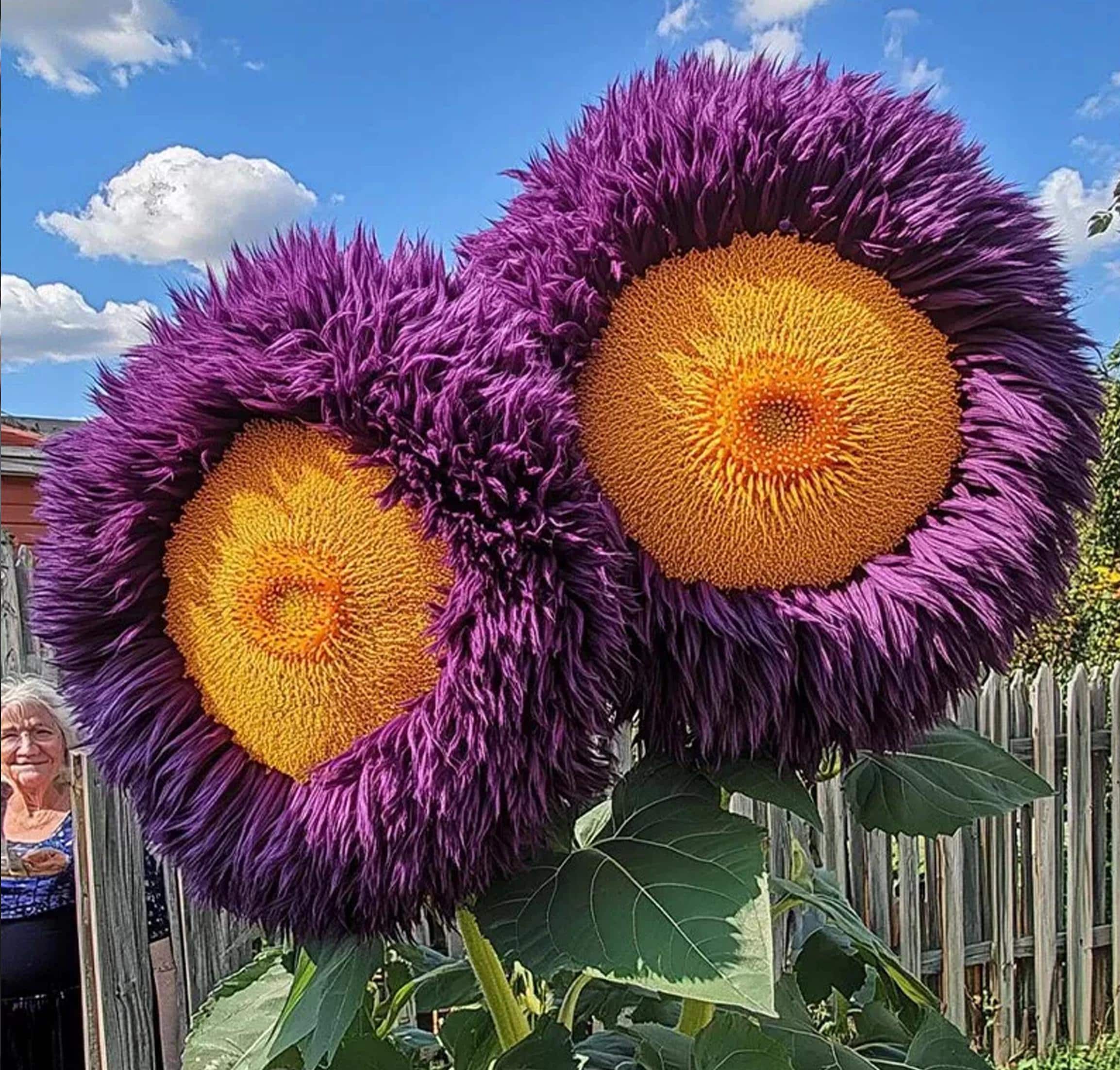 50+ Seeds | Rare Yellow & Purple Giant Teddy Bear Sunflower – Fluffy Double Blooms – Heirloom Mix – Tall Pollinator Plant Garden Showstopper